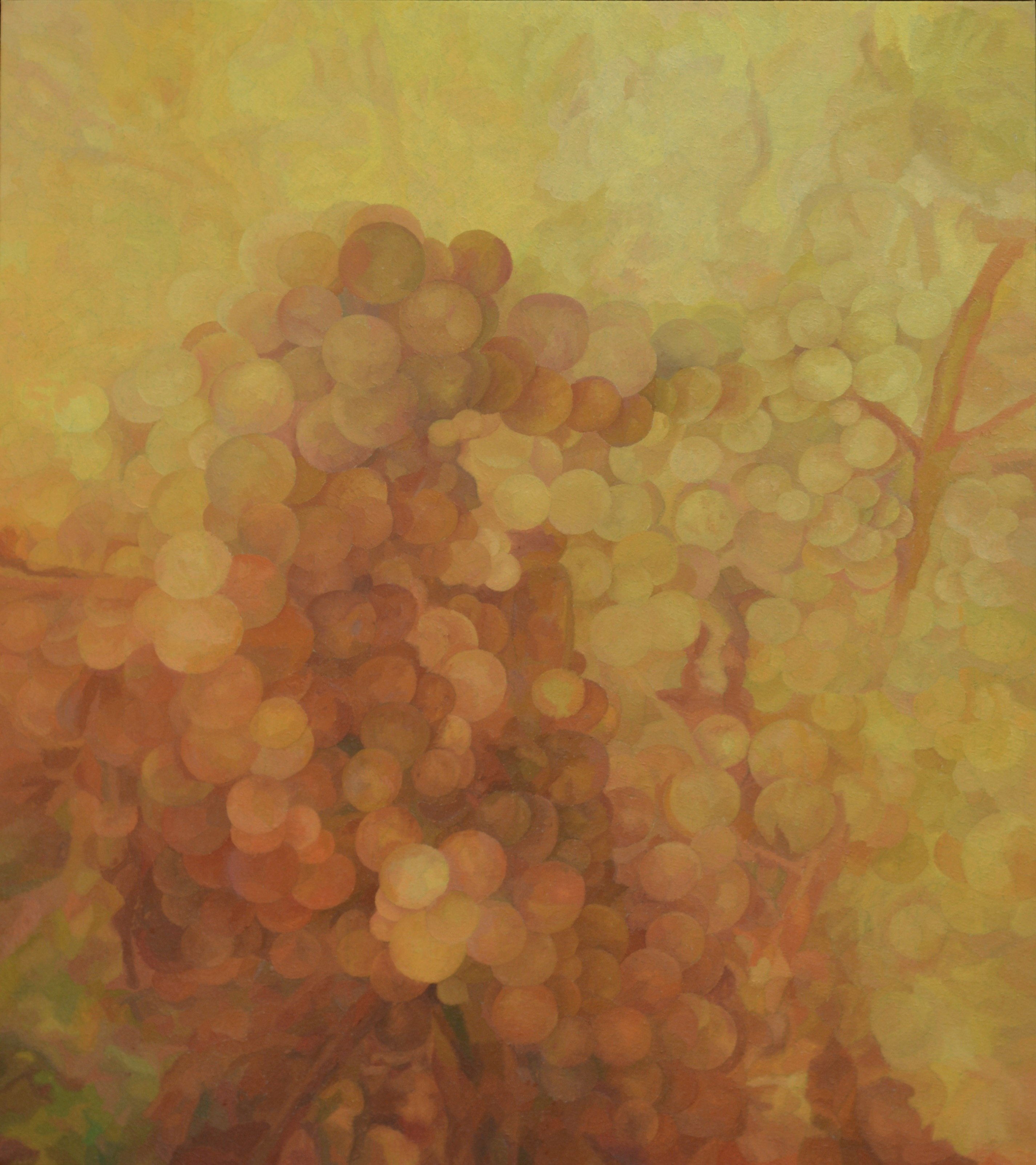 In questo lavoro ho voluto dipingere un grappolo d’uva con la fantasia e i colori